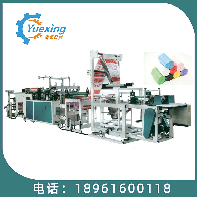 機器特性 此設備為生產連卷四折平底垃圾袋的專用設備,單通道高速無拉伸,操作簡便,底封好,收卷整齊,個數準確,手動手卷。此設備采用全鋼板一體而成,用電220v照明電即可。
