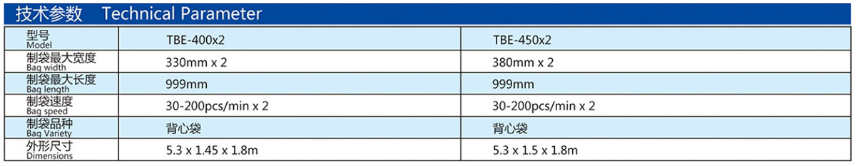 機(jī)器特性 該機(jī)適用于對高密度聚乙烯(HDPE),低密度聚乙烯(LDPE)筒狀本色和彩印塑料薄膜進(jìn)行熱封熱切制袋,雙刀雙道生產(chǎn)線,配備機(jī)械手自動沖,從送料、封底、切斷、沖口、折袋、輸送一次性完成,自動